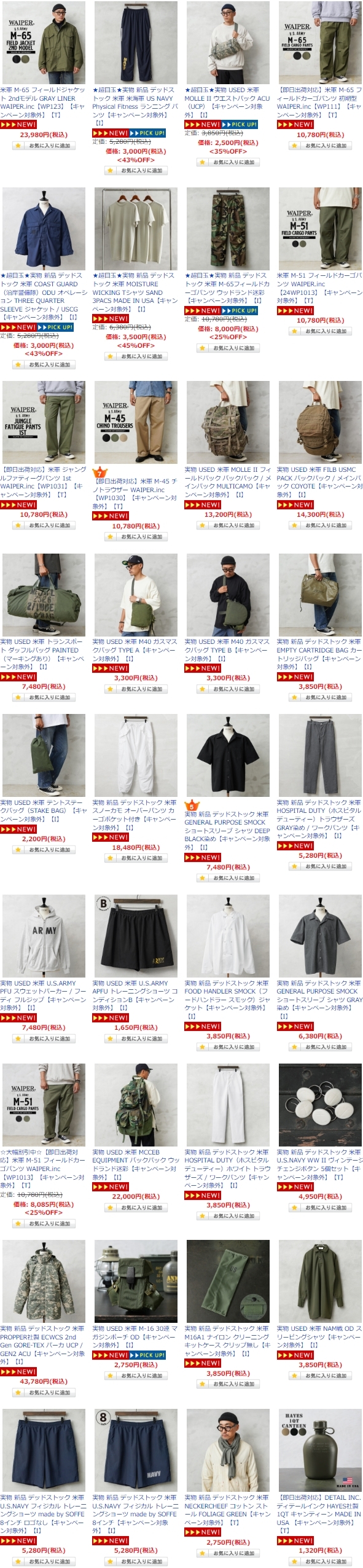 ①本格派ミリタリーセレクトショップ②日本最大級の品揃え③実店舗と通販サイトWAIPER(ワイパー)のアイテム①実物放出品(1)ロイヤルネイビーコンバットパンツ(ユーズド)(2)ロシア軍70sスリーピングシャツ(デッドストック)(3)チェコ軍ワークコート(デッドストック)(4)アメリカ軍ECWCSレイヤリングシステムGEN3レベル7②ミリタリーブランド(1)ALPHA INDUSTRIES(アルファインダストリーズ)(2)AVIREX(アヴィレックス)(3)HOUSTON(ヒューストン)③その他ブランドアイテム(1)Good On(グッドオン)